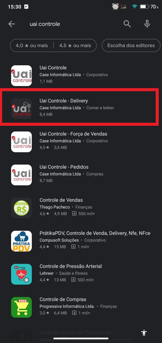 Após pesquisar, clique sobre o aplicativo com o nome destacado, e selecione a opção Instalar.
