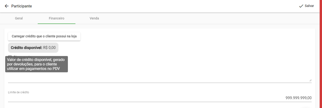 CARREGAR CREDITO QUE O CLIENTE POSSUI NA LOJA: Mostra a quantidade de crédito disponível para reaproveitamento em outras compras que o cliente realizar na loja. Função válida apenas para o PDV.