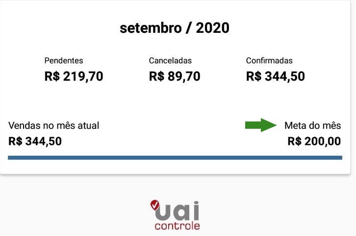 O valor configurado determinará qual a meta a ser alcançada no mês.