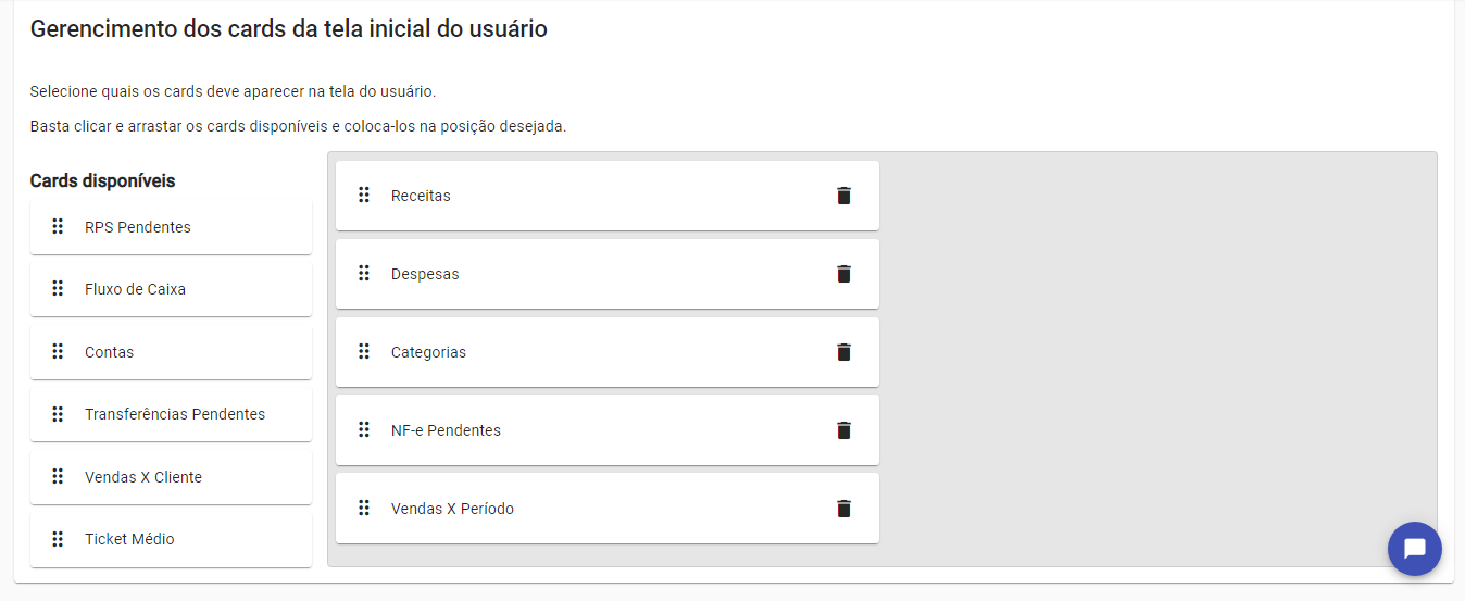 Importante: A função 'gerenciar cards' aparece somente ao editar um usuário.