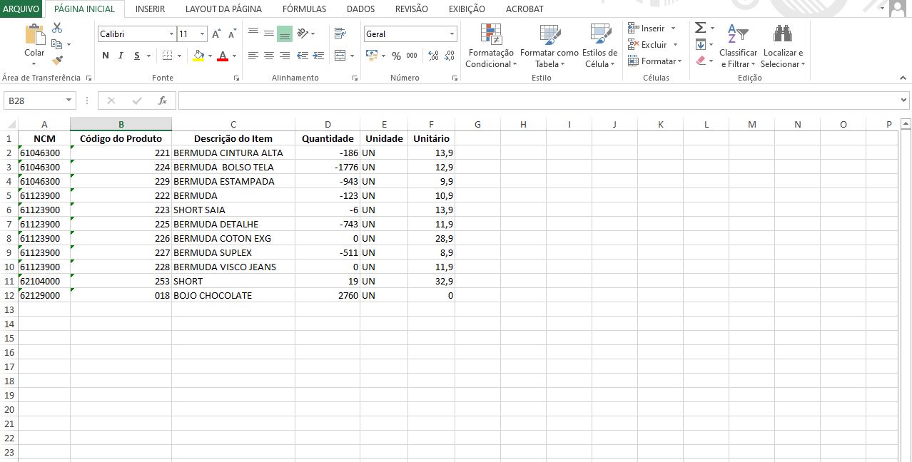 Quando aberto, o relatório se apresenta da seguinte forma;