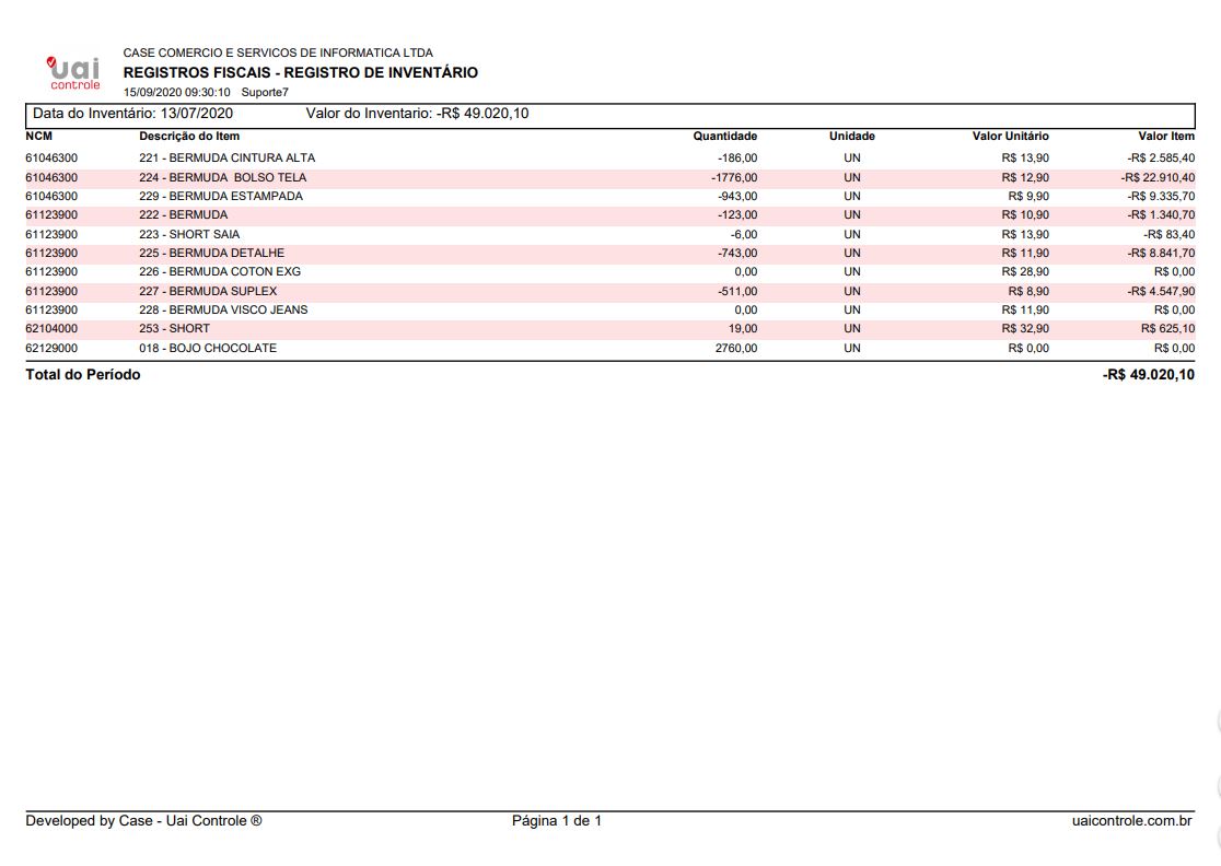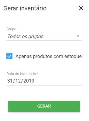 Marcando esta opção, seu inventário será gerado apenas com produtos que possuem estoque, ou seja, se o estoque do seu produto estiver negativo ou zerado, este não aparecerá no seu inventário.