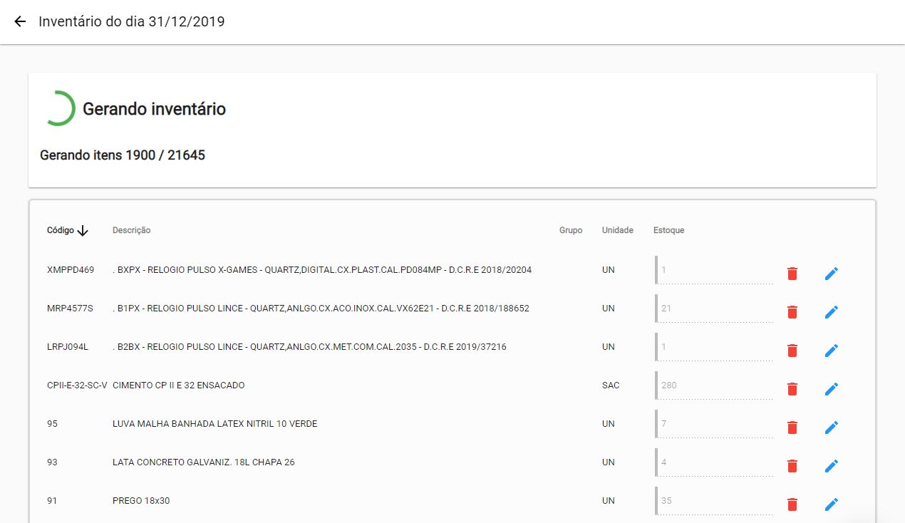 O inventário de estoque é gerado em segundo plano, então você pode realizar as demais operações em seu sistema normalmente.